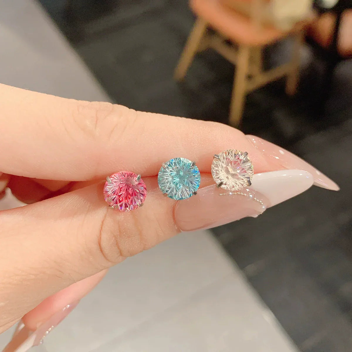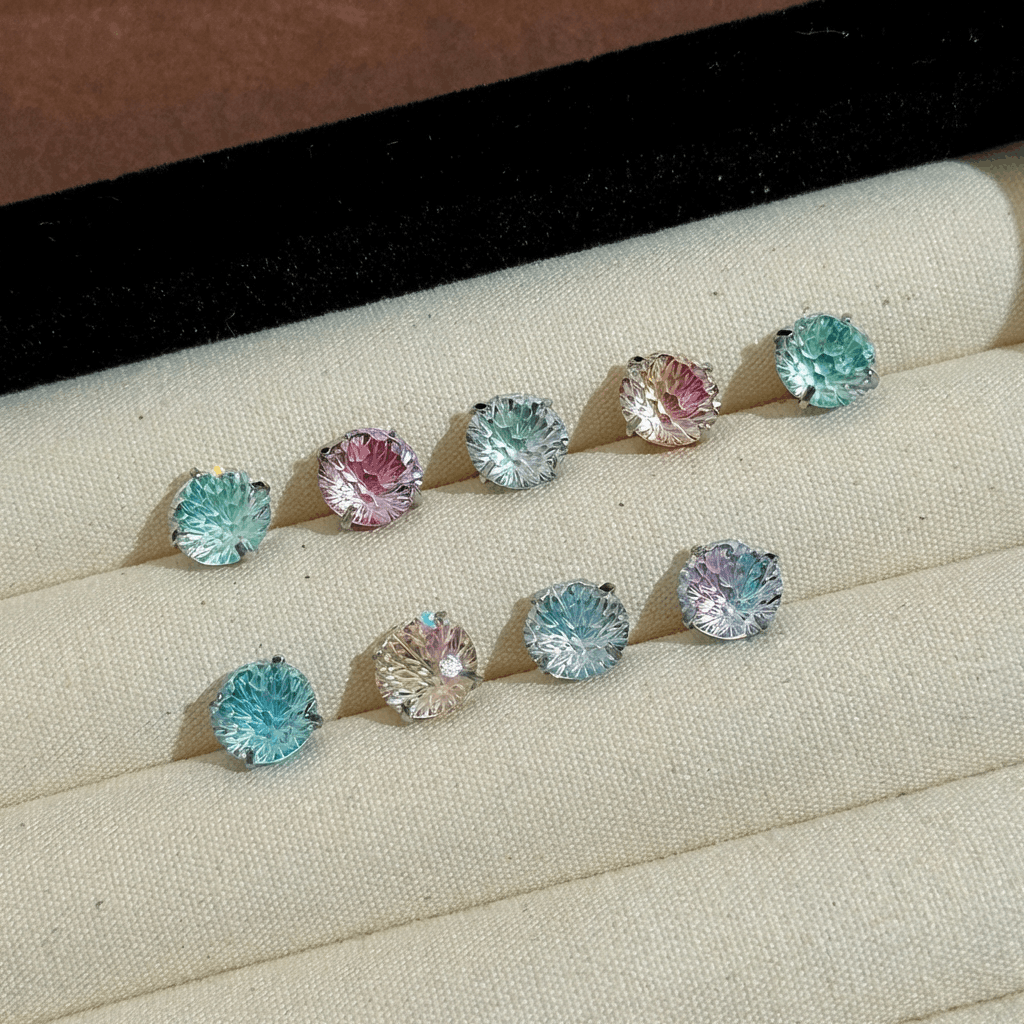 - ✨ Dreischichtiger Feuerwerksschliff bricht das Licht in den Farben des Regenbogens: Eisblau, schimmernd im Licht und je nach Blickwinkel – als hätte man ein kleines Feuerwerk am Ohr!