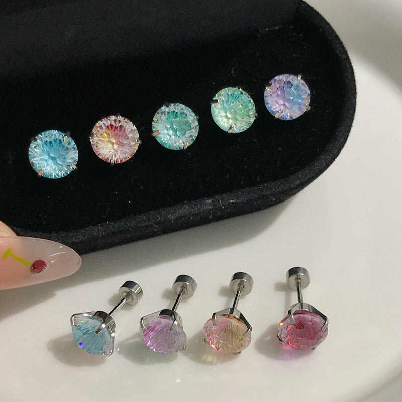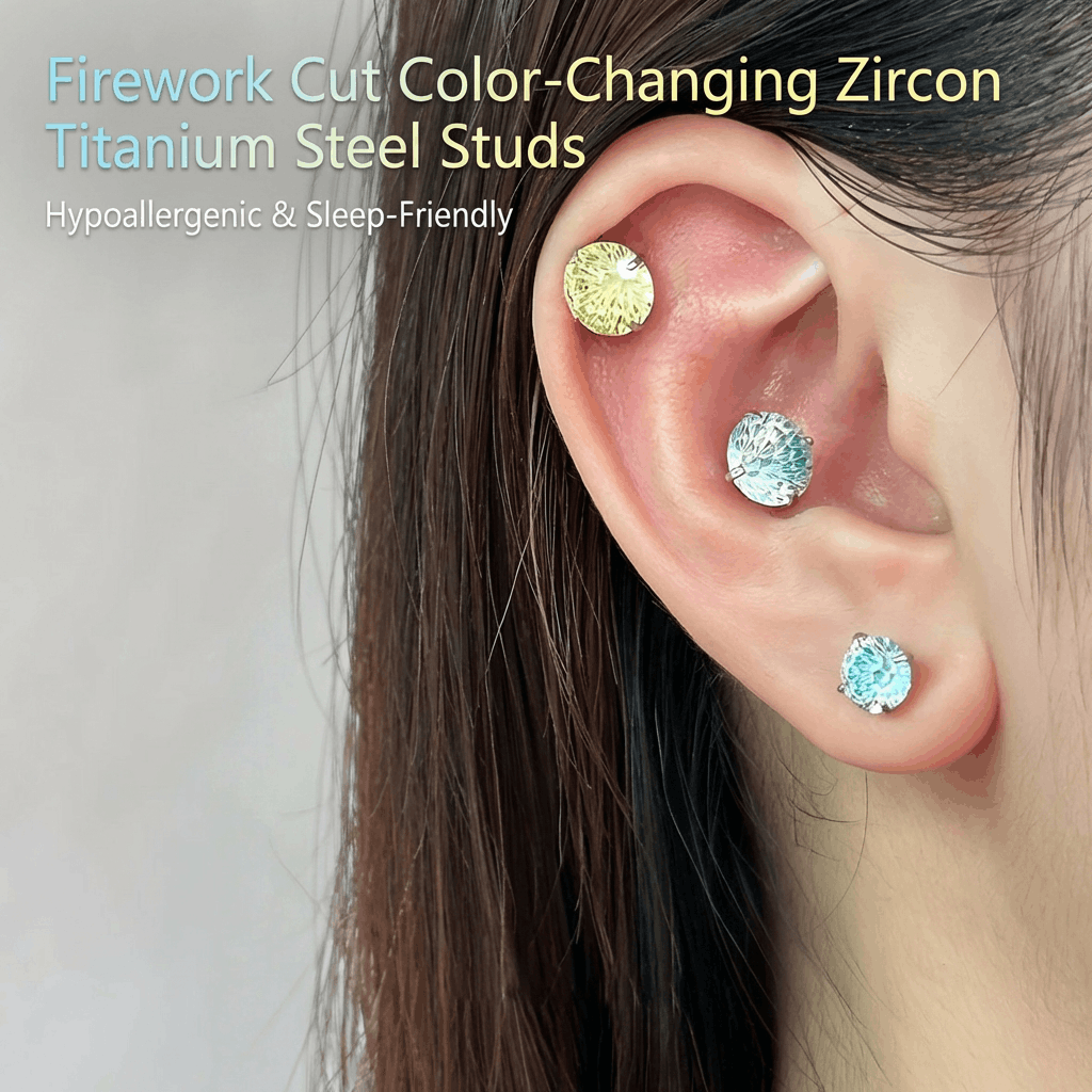 Lernen Sie Ihren neuen Lieblingsschmuck für den Alltag kennen: farbwechselnde Ohrringe mit Zirkonia in Feuerwerksschliff, hergestellt aus medizinischem 316L-Titanstahl. Diese Ohrringe wurden für empfindliche Ohren entwickelt und verfügen über einen zweischichtigen Farbverlauf und einen flachen Schraubverschluss, der auch beim Duschen und Schlafen sicher sitzt.