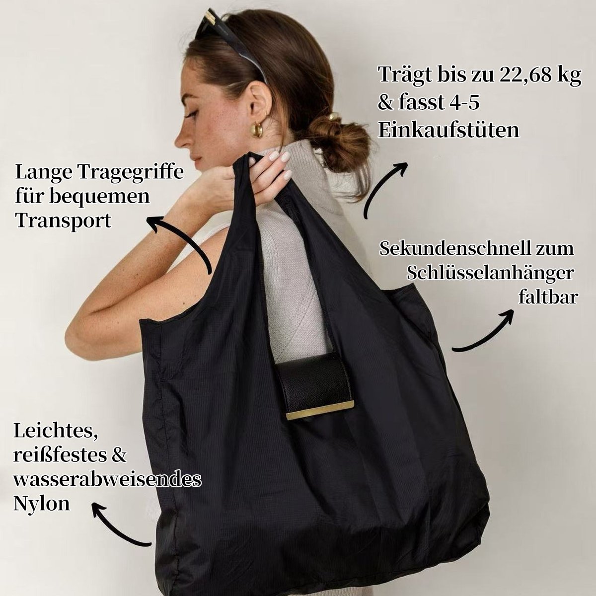 đ„SchlĂŒsselanhĂ€nger-Tasche aus Veganem Leder â Wird zur gerĂ€umigen Einkaufstasche